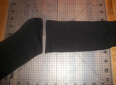 To start you are going to need some long socks. (mine came in a pack 3 pair for $4). You can find really cute ones with patterns too! Possibilities are endless!
