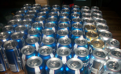 Again, for the gag gift I went with beer cans (some great friends contributed to the stack), but any cans would work.