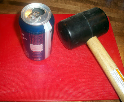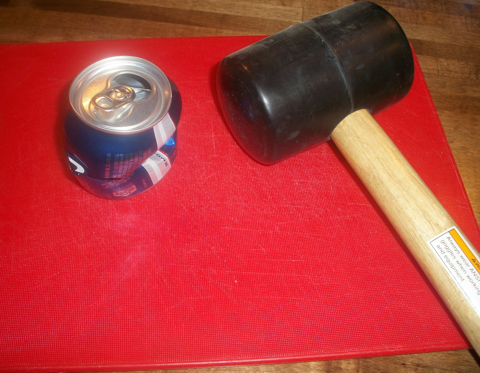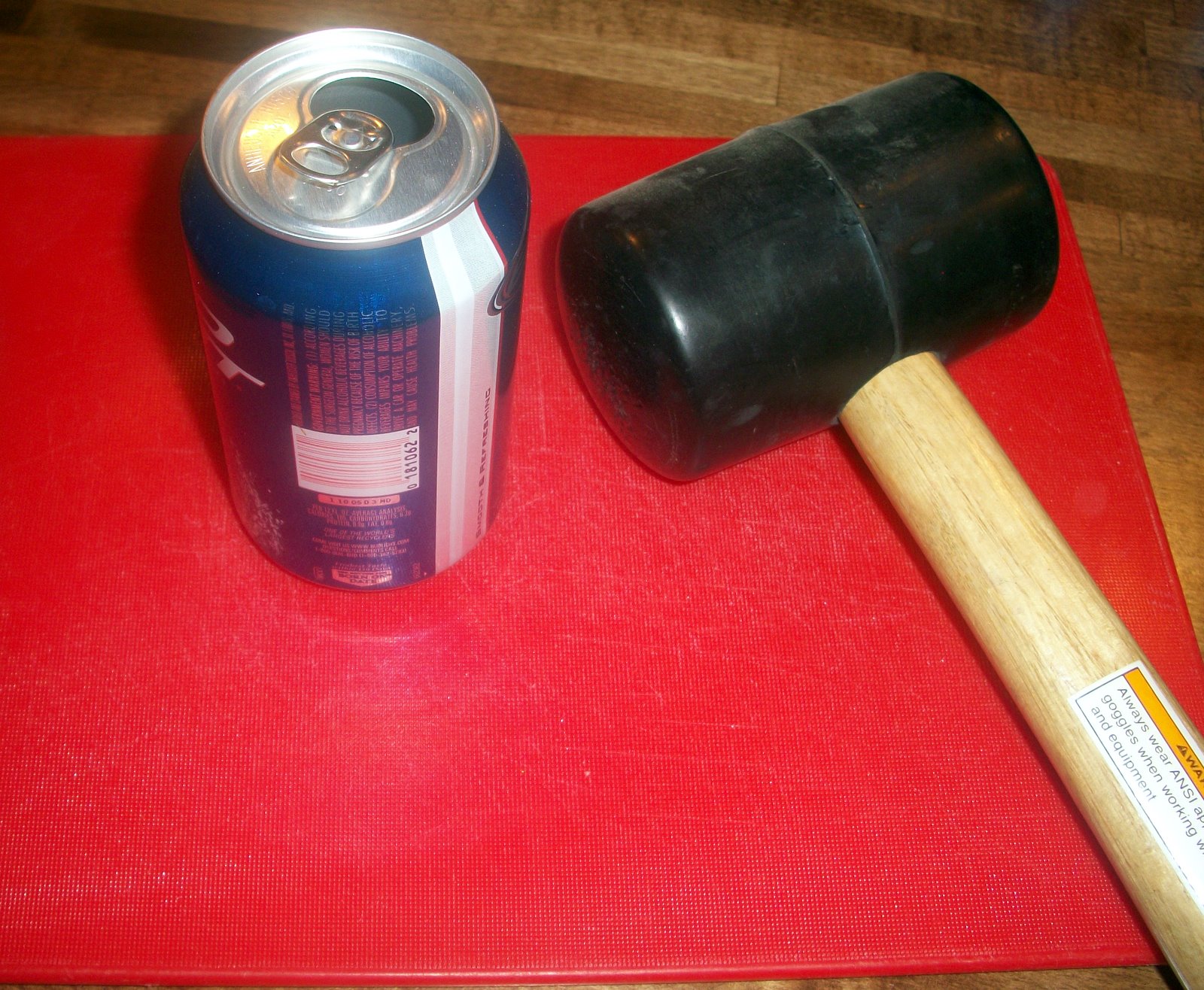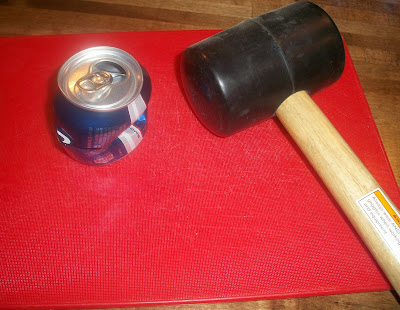 Hammer your cans until they are a good height to you, I made all my cans just a little under half the size. WATCH OUT FOR SHARP EDGES!!