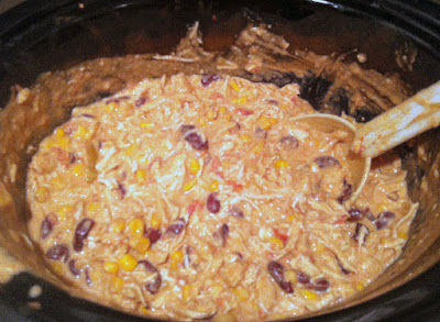 Place the shredded chicken back in the crock pot, and mix again.